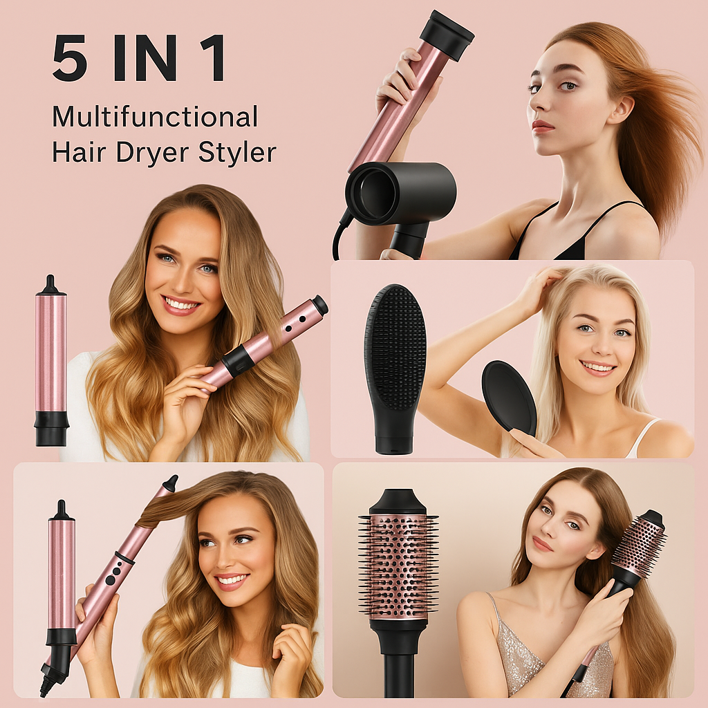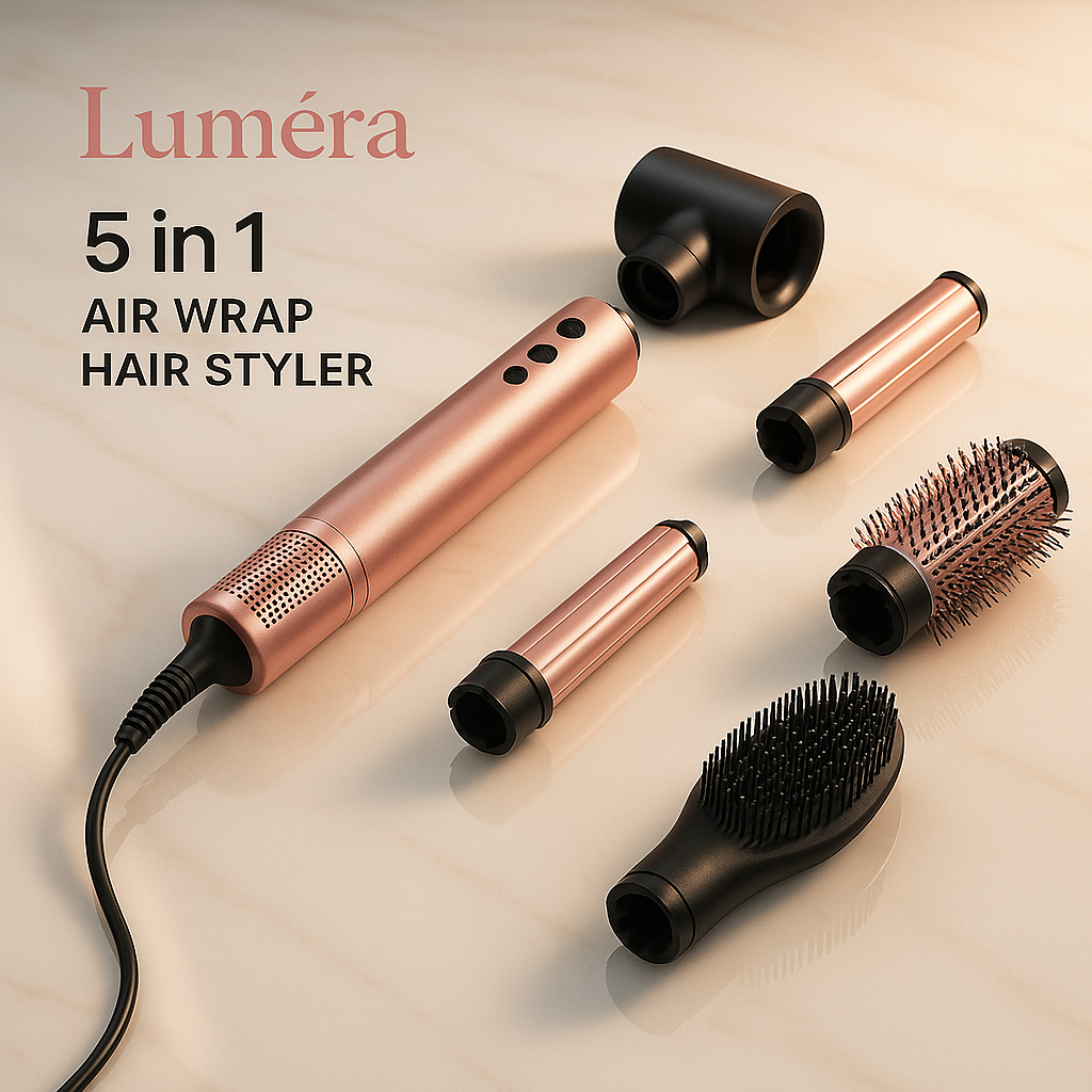 The LuxeCare's 5 in 1 Air Styler combines multiple functionalities for every hair type—curl, straighten, wave, and volumize, all in one stylish tool. It's lightweight, breathable, and perfect for on-the-go styling.